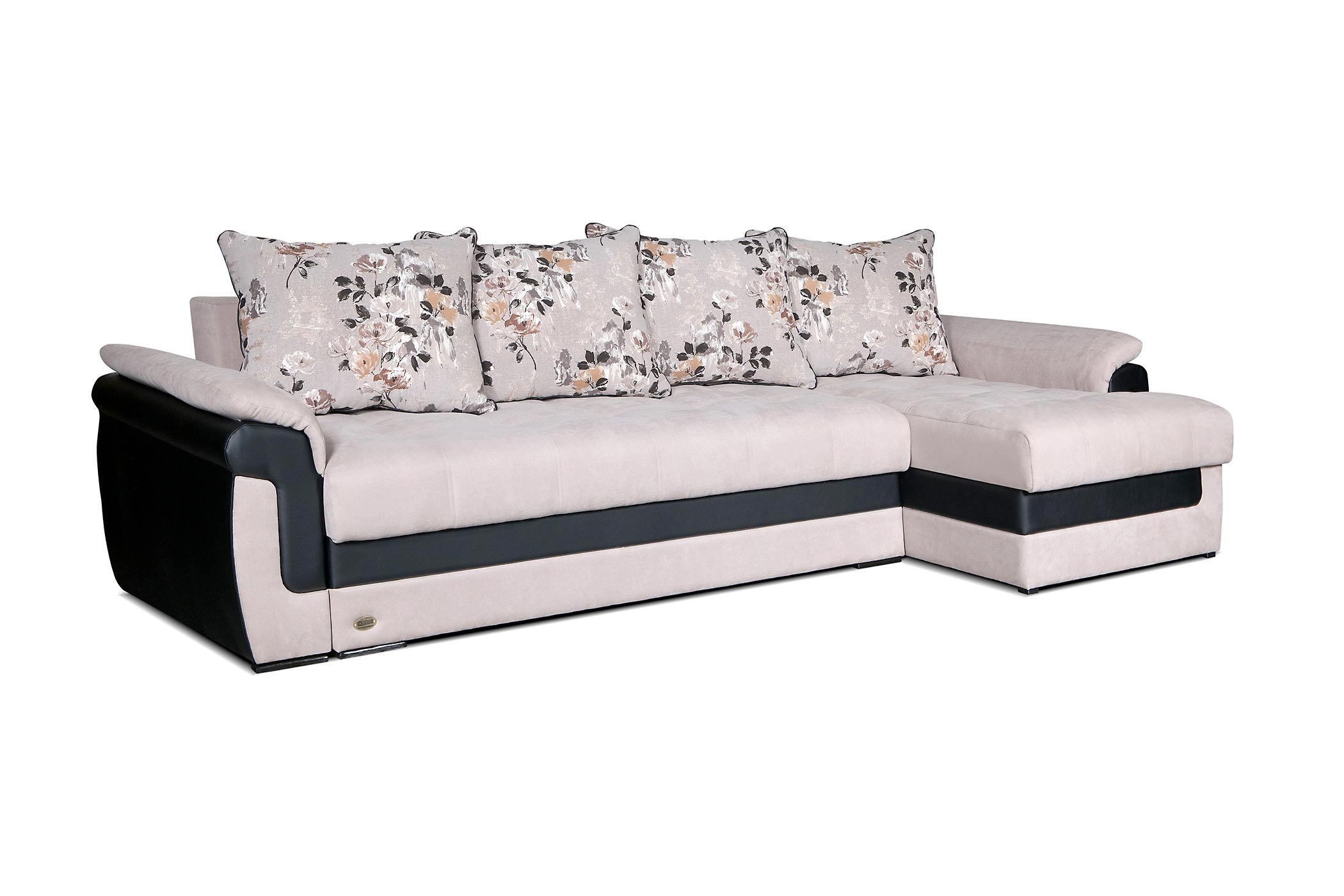 Угловой диван «Нирвана» выполнен в белом цвете с темной кожаной полосой. Механизм «тик-так» обеспечит наличие глубукой ниши для белья. Слегка скошенные подлокотники не помешают трансформации дивана. Возможны варианты различных цветовых схем.