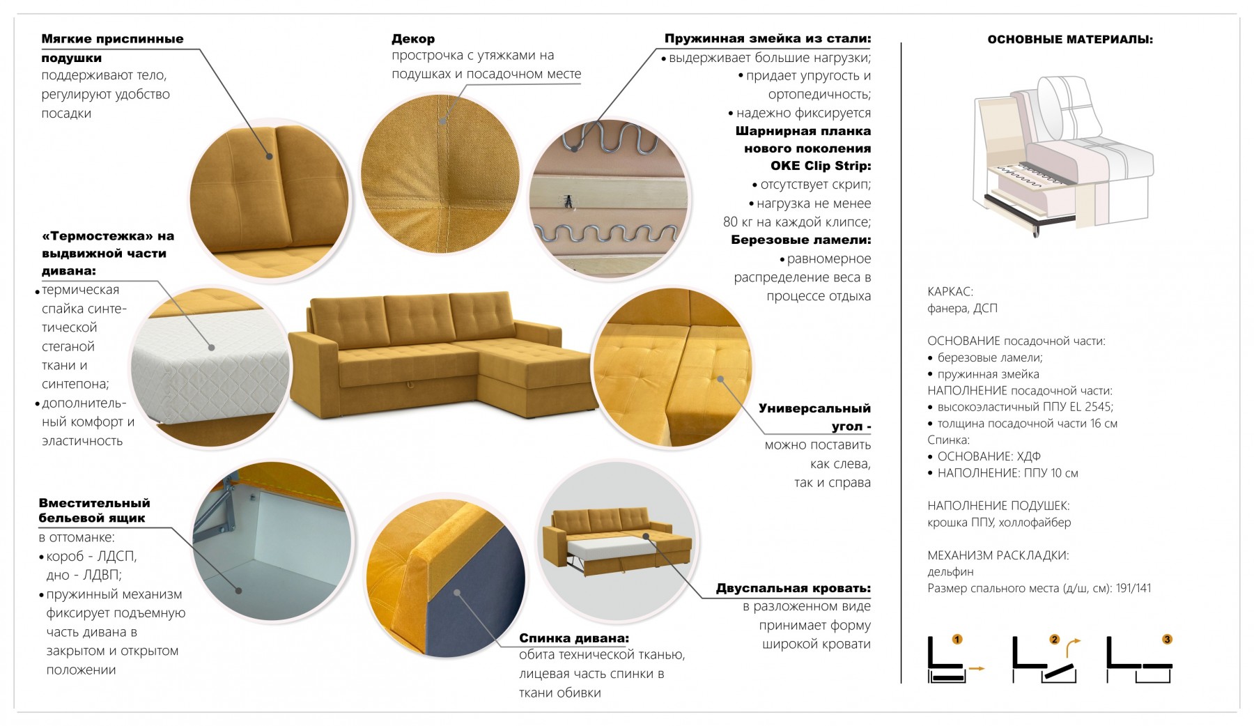 Спальное место: 140x190(220) см. Механизм раскладки: Тик-Так / Пантограф