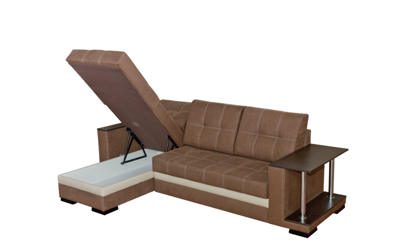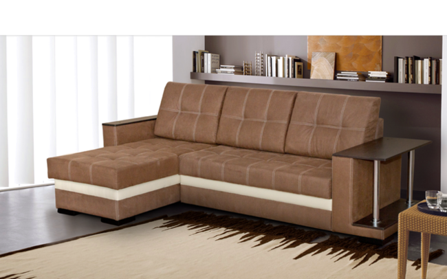 Угловой диван «Ричард - 2 с оттоманкой» обладает всеми положительными характеристиками для идеальной мебели: он оснащен легким и надежным механизмом трансформации «дельфин», столиком, прикрепленным сбоку, и достаточно большой нишей для постельного белья.
