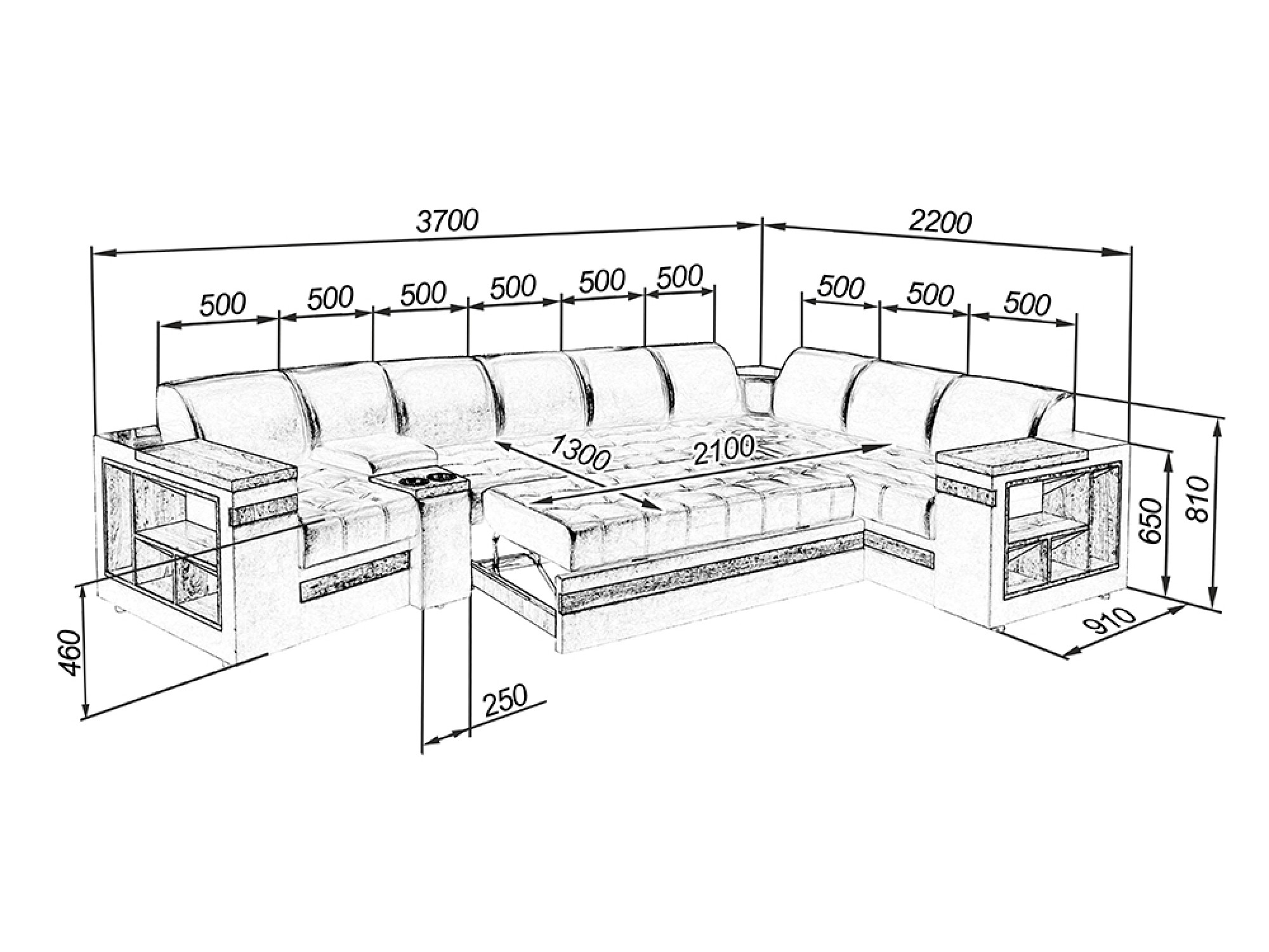 Размер спального места: 2100х1300 мм.