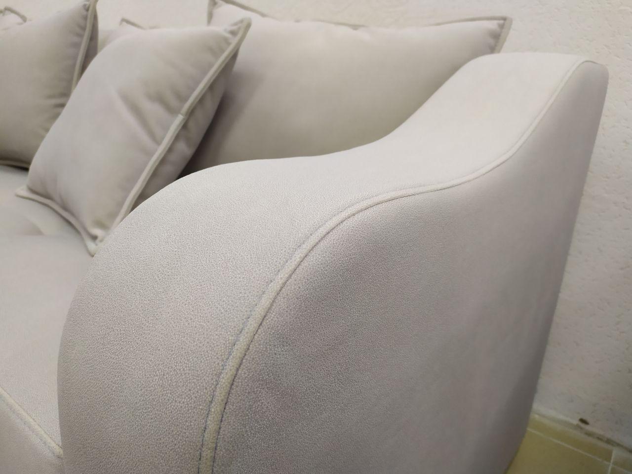 Кожаные подлокотники, высокое сиденье, спинка на две широкие подушки.