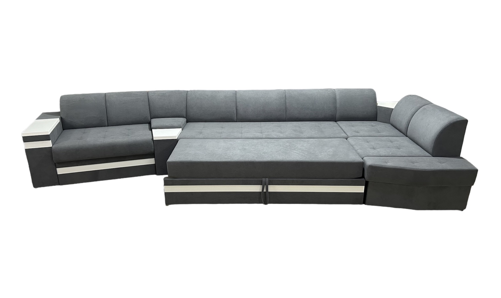 Габариты (ШхГхВ): 240х190х90 см (можно изменить). Обивка: велюр. Более 1000 вариантов цвета.
