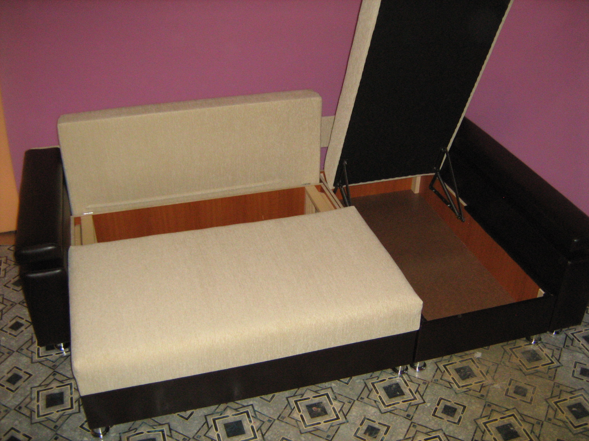 Обивка: шенилл и искусственная кожа.