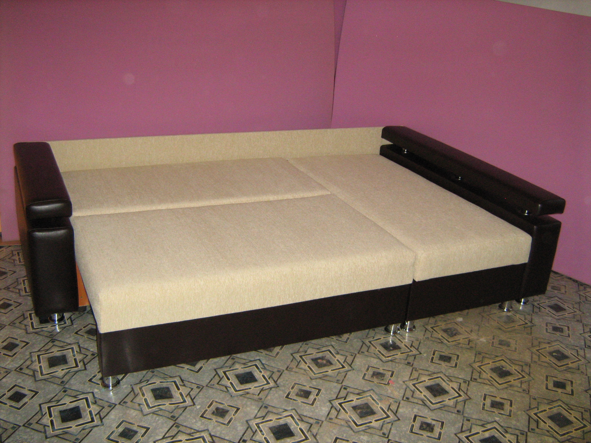 Угловой диван со спальным местом в комбинированной обивке