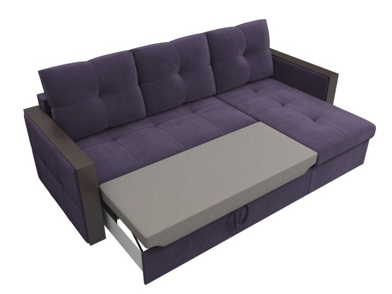 Угловой диван «Валенсия» правый угол Велюр Фиолетовый