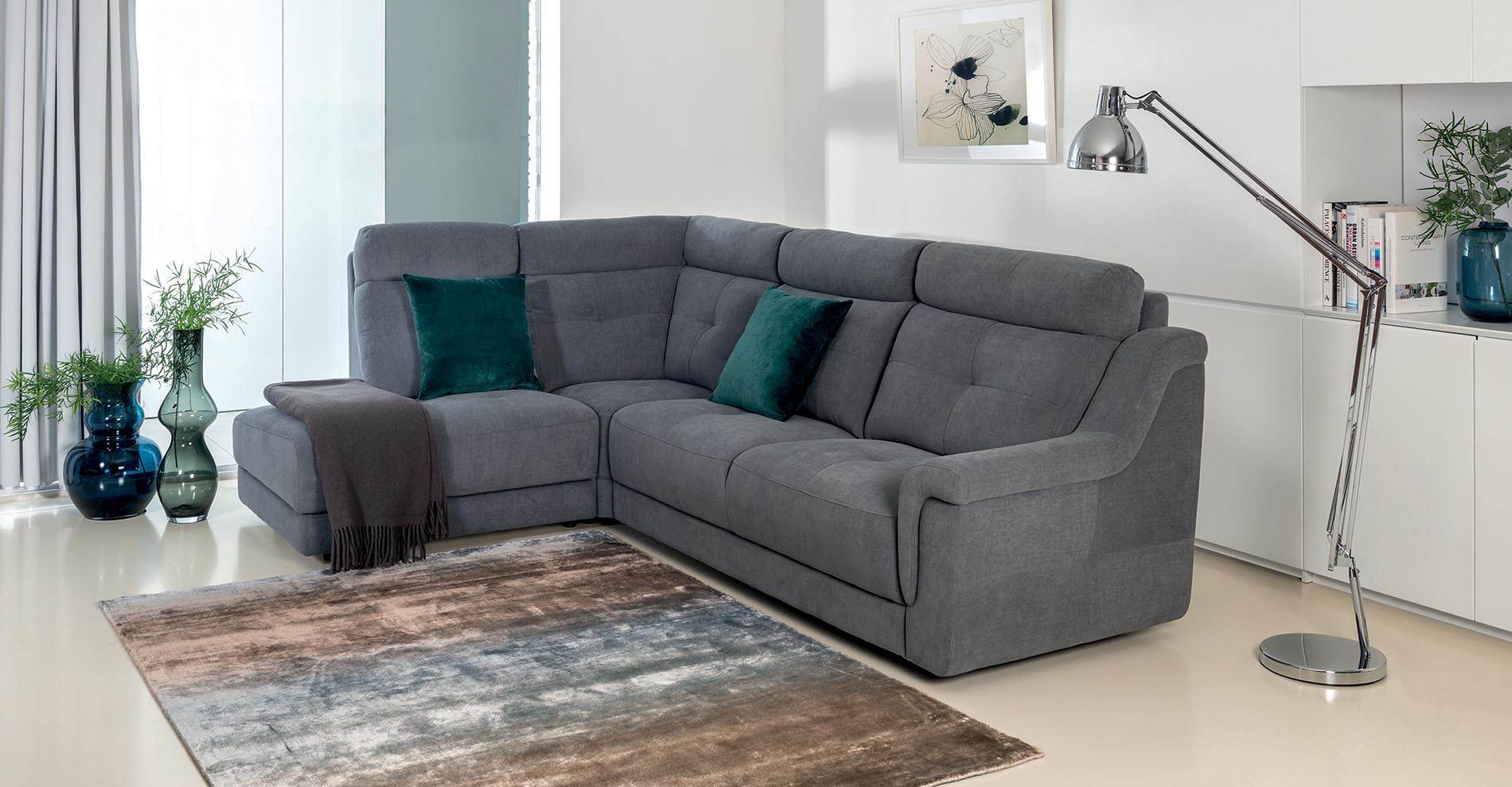 Модульный диван с индивидуальной конфигурацией для гибкой планировки.