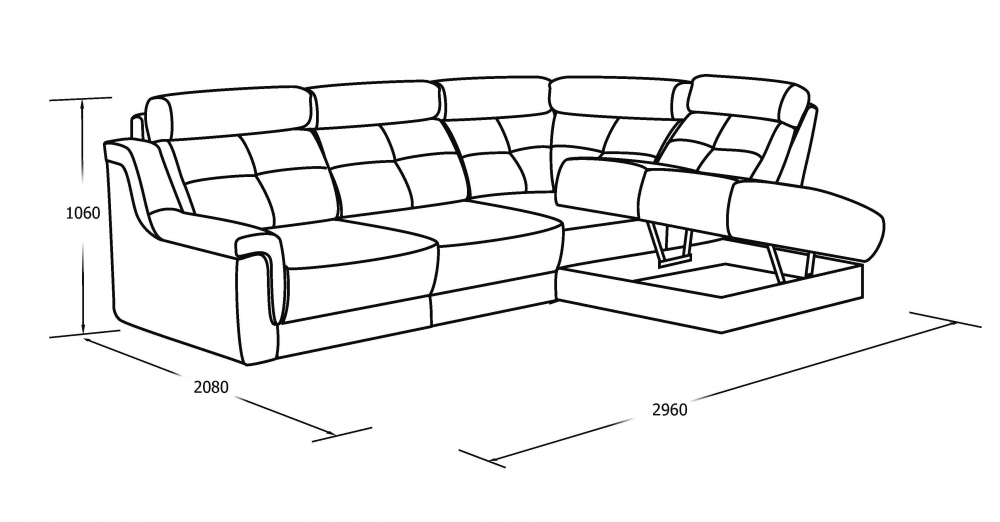 Общая глубина: 2080 мм.