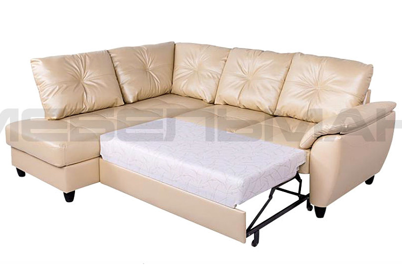 Угловой диван «Николь» оснащается просторным и удобным спальным местом. Кожаная обивка может быть выполнена в различных цветовых вариациях. В роли спинки выступает ряд декоративных подушек с элегантной стяжкой посередине. Представленный диван удачно впишется в пространство как современной, так и классической гостиной.
