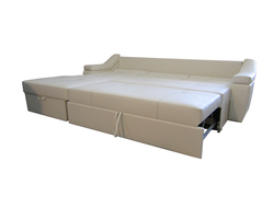 Ящики в подлокотниках и столик. Настил: ортопедические латы + ППУ.