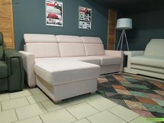 Современный диван в светлой обивке. Удобный и надежный механизм трансформации.