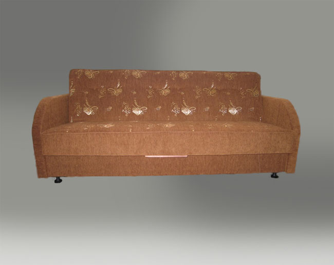 Раскладной диван с фигурными подлокотниками.