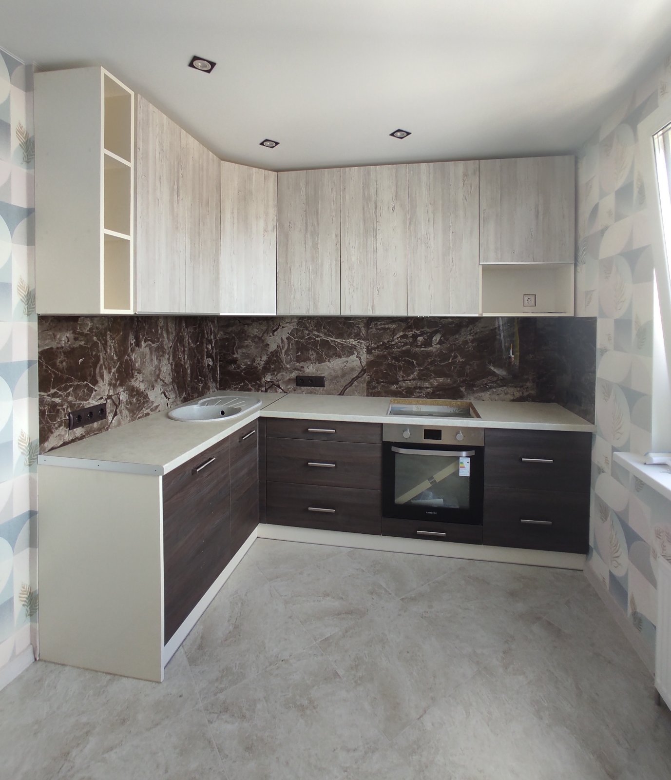 Дизайн и конструирование угловой кухни в комбинированном цвете