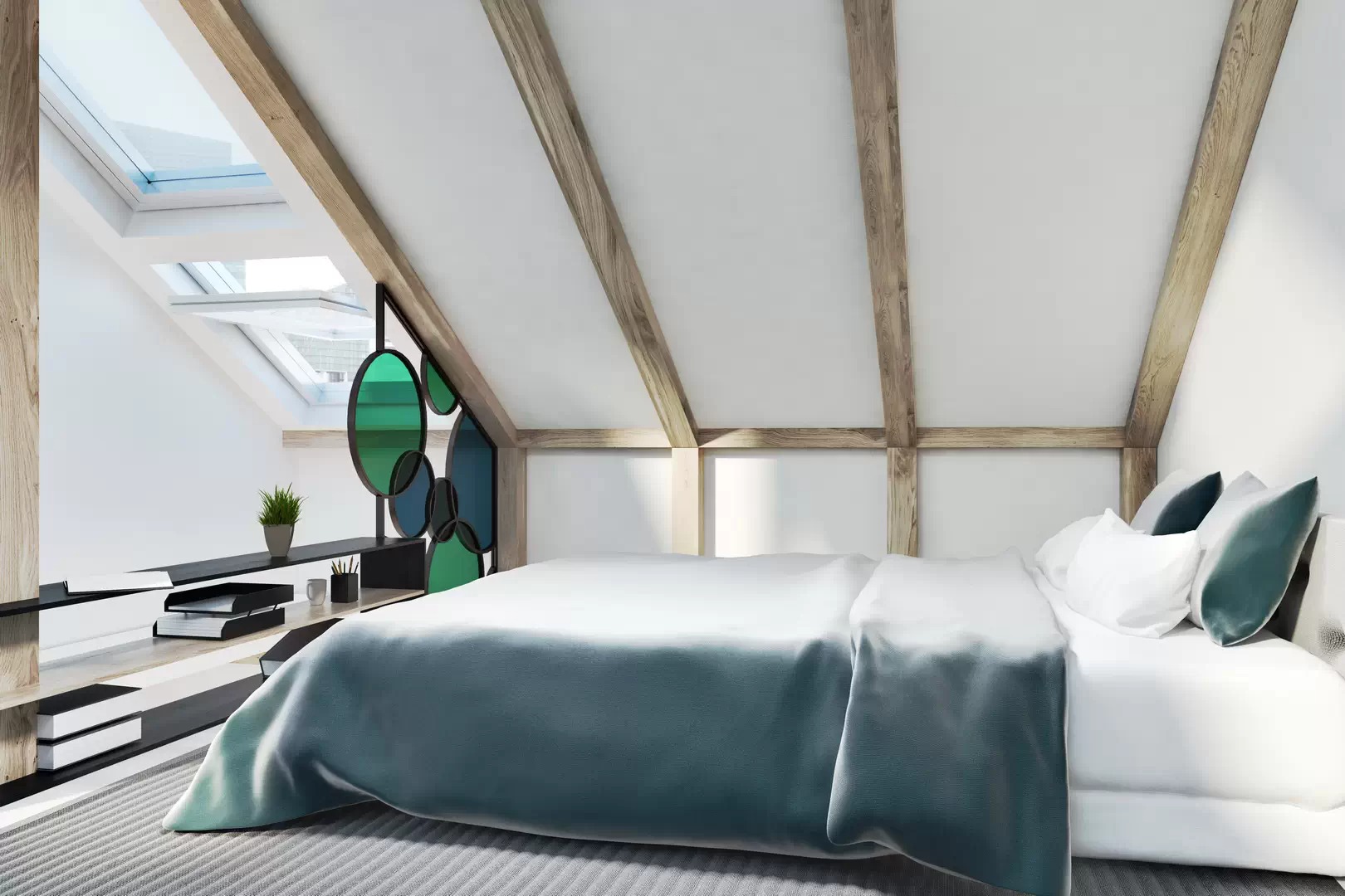 код 113719Просторная светлая спальня в скандинавском стиле.