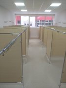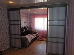 Раздвижная перегородка на направляющих из непрозрачного материала.