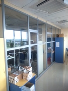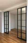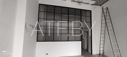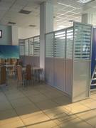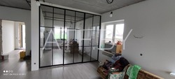 Перегородка для зонирования. Черный профиль, прозрачное стекло.