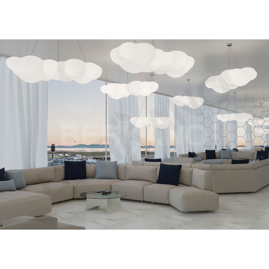 Cloud прекрасно подойдет для общественных зон, таких как лаунжи, вип залы в аэропортах, а также для жилых помещений. Светильник будет выигрышно смотреться как одиночно в качестве яркого акцента, так и в группе из нескольких изделий.