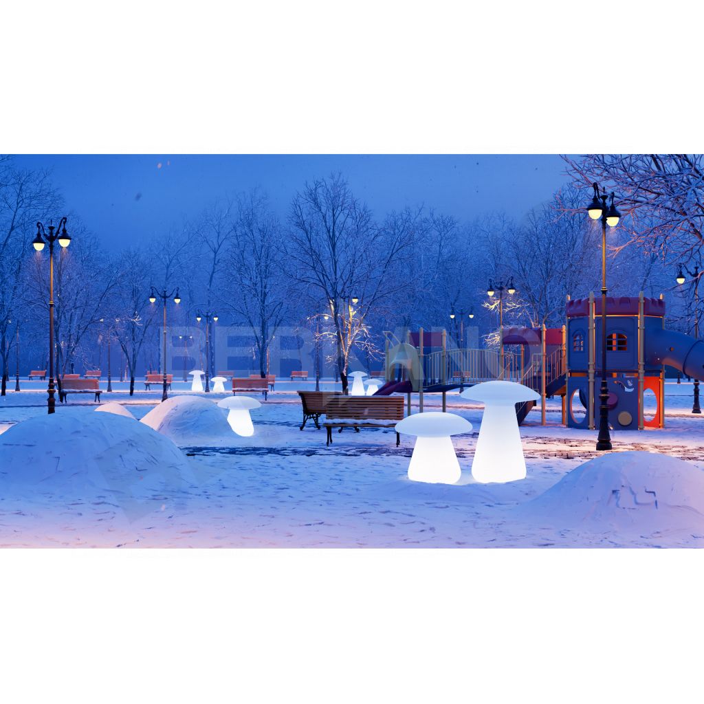 Экстерьерный светильник Fungo в форме грибочка отлично дополнит дизайн ландшафтных парков, детских площадок, а также территорий загородных ресторанов и частных домов.