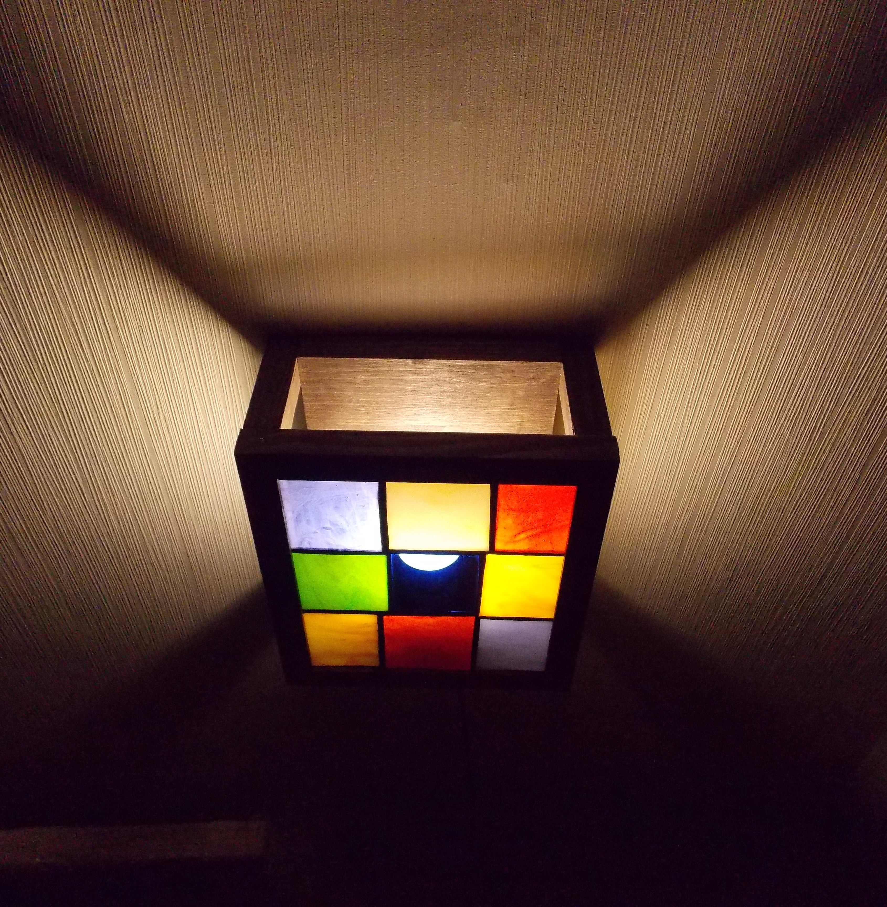 Толщина: 80 мм. Материал: массив древесины, витражное стекло, металл.
