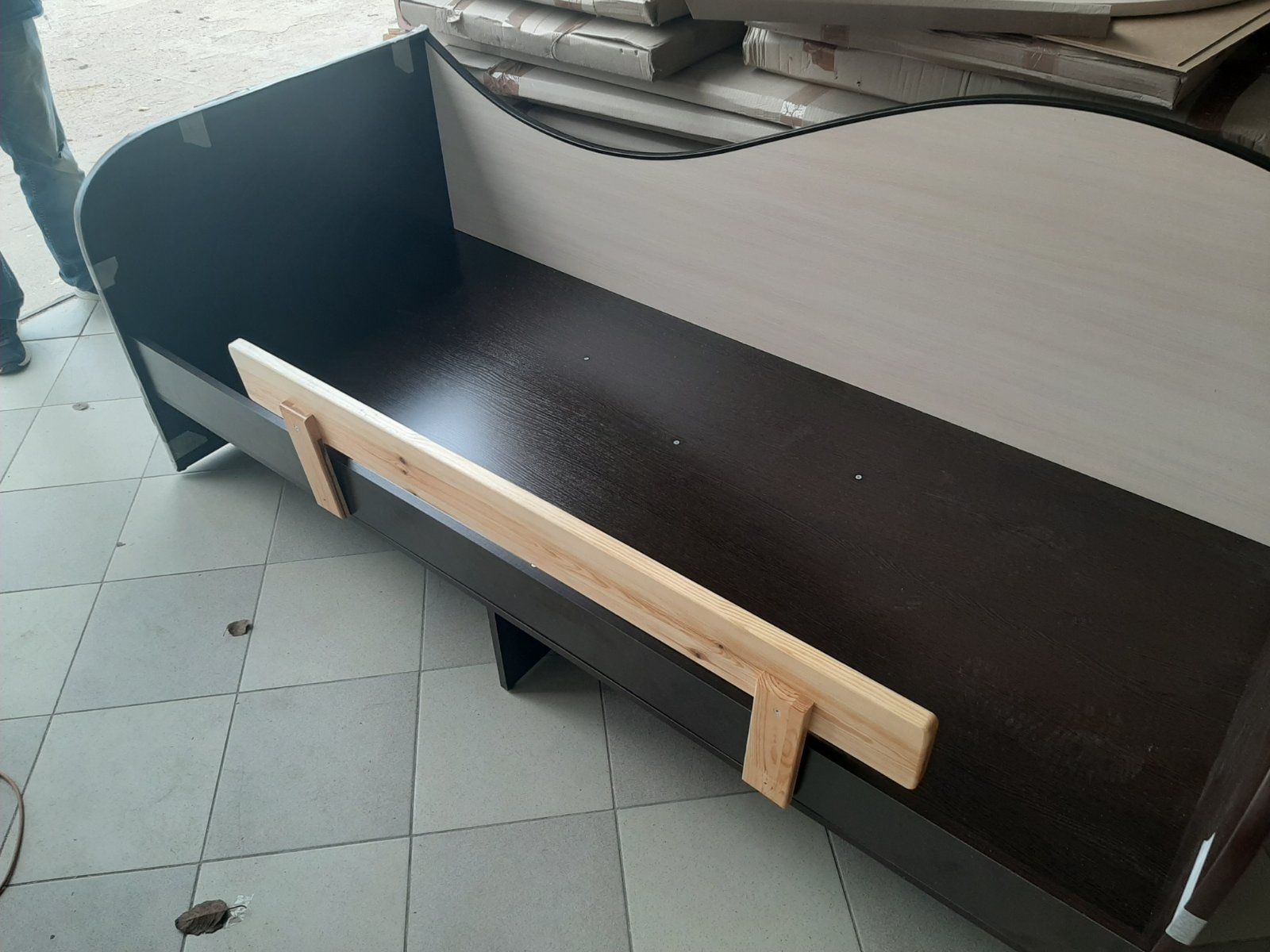 Надежный бортик для детской кровати. Изготовлен из массива сосны.