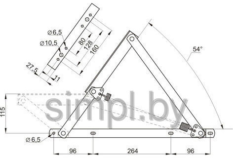 Механизм подъема матраса «Тахта №498»комплектуется пружиной, усилием 500Н. При изготовлении механизмов применяется высокопрочная сталь с цинковым покрытием. Процесс производства осуществляется на профессиональном современном оборудовании завода. Угол подъема представленной детали равен 54".