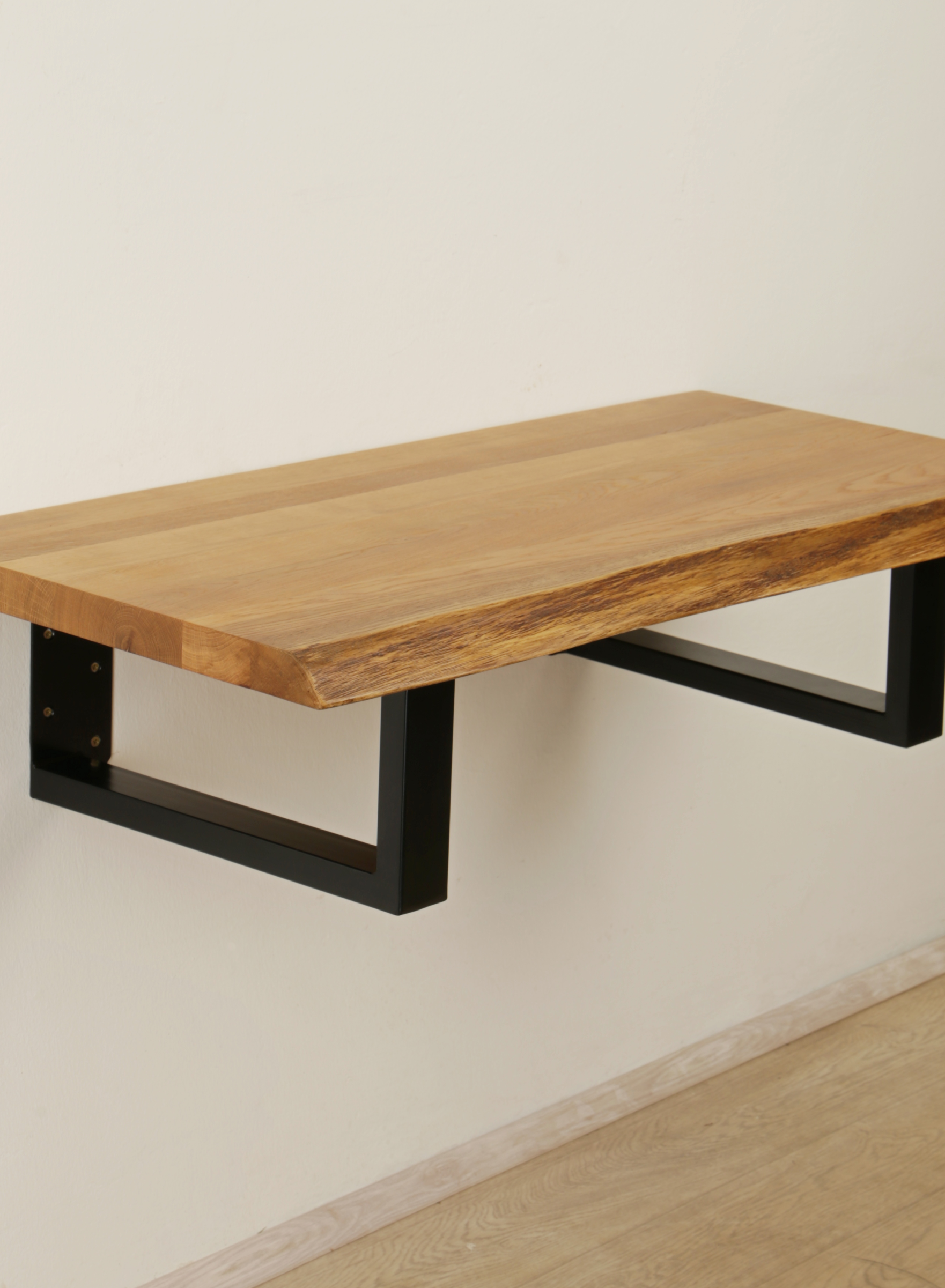 Полка настенная для книг, декора, фотографий. Материал: цельноламельный массив дуба, металл.