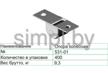 Обоймы колесных опор от ЗАО «Окуловский завод мебельной фурнитуры» изготовлены из высококачественной, прочной стали и имеют цинковое покрытие. Колесо выполняется из пластмассы. Колесные опоры рассчитаны на максимальную нагрузку до 15 кг.