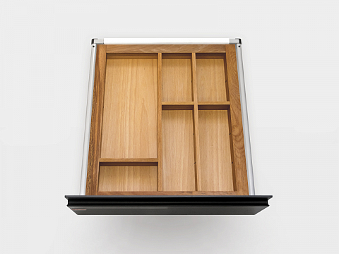 Лоток из древесины бука, предназначенный для хранения столовых приборов. Модульные делители позволяют создать наиболее оптимальную конструкцию под персональные нужды. В комплекте противоскользящий коврик.
