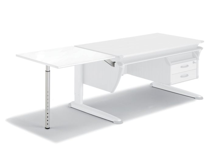 Дополнительная приставка может просто увеличить рабочую поверхность, а может стать соединителем для пары столов, размещенных под углом. Вы сможете выбрать как приставку одного тона с вашим столом, так и отличающуюся по цвету, собрав необычную комбинацию.