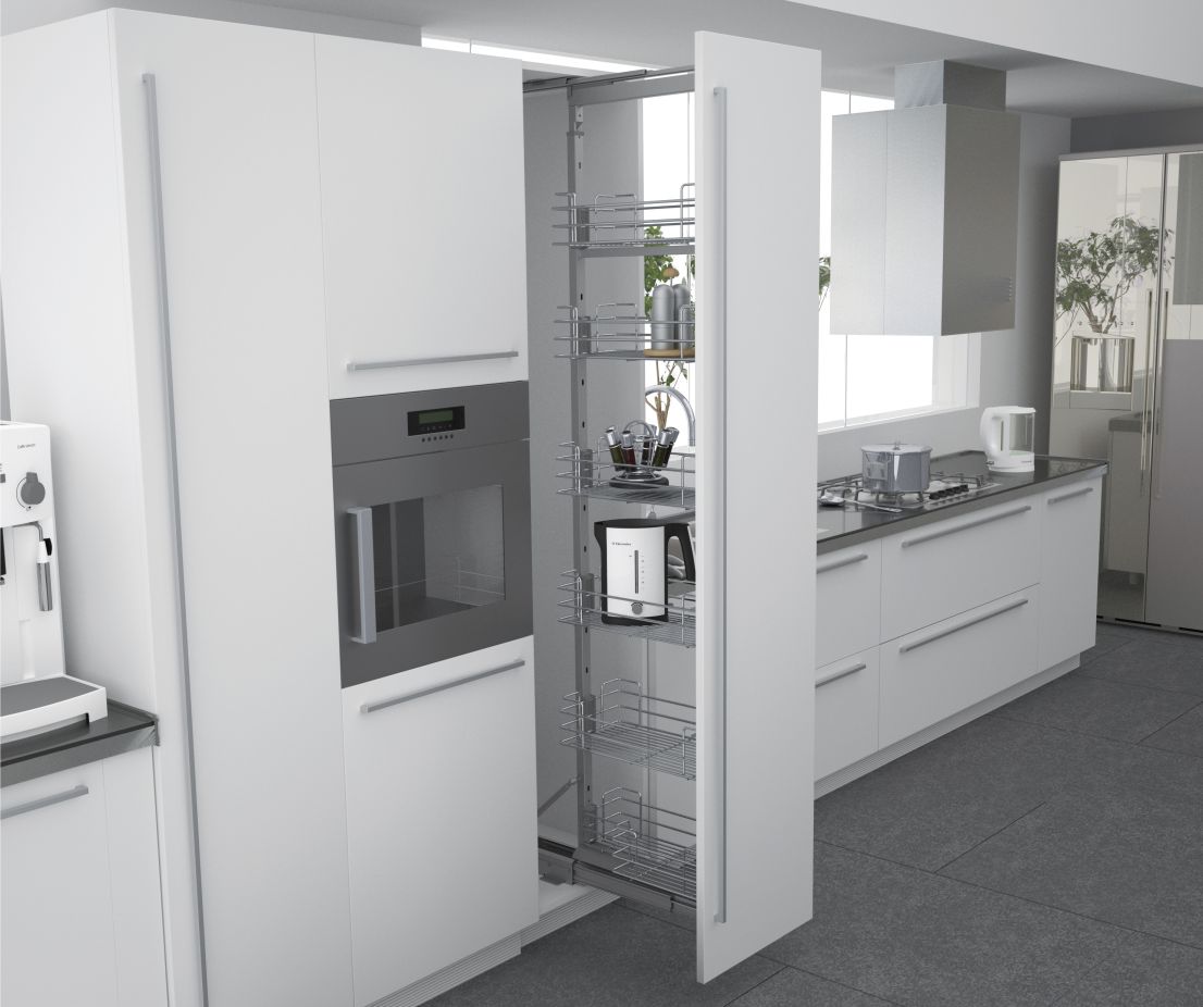 Современная системы выдвижения для кухни «SIGE» - это практичное и удобное решение для хранения кухонных принадлежностей и утвари. В состав фурнитуры «SIGE» входят ряд интересных приспособлений, таких как сушка для большого объема посуды и выдвижные корзины для тарелок и бутылок.