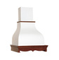 Современная эффективная вытяжка является элементом, без которого невозможно обойтись на кухне. При помощи вытяжки можно избавляться от запахов и дыма, который появляется в процессе приготовления пищи. Прочный металлический купол придаст вытяжке надежности. Порошковая окраска добавит цветам вытяжки красоты и насыщенности, а также стойкости к разного рода повреждениям. Изысканный бандаж выполняется из прочного массива дуба, отличающегося долговечностью.