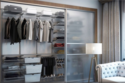 Штанги для одежды, выдвижные ящики, открытые ниши.