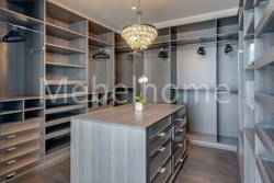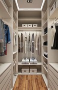 Оснащается шкафом, открытыми нишами, штангами для одежды, ящиками, подсветкой.