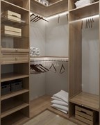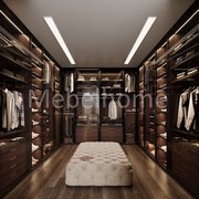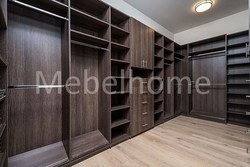 Изготавливается из ЛДСП. Штанги для одежды, выдвижные ящики, открытые ниши. Подсветка.