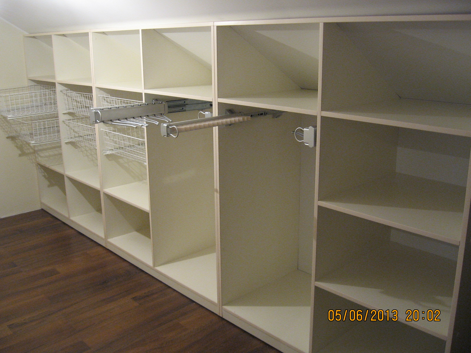 Функциональная гардеробная с ящиками, полками для обуви, штангами и шкафами.