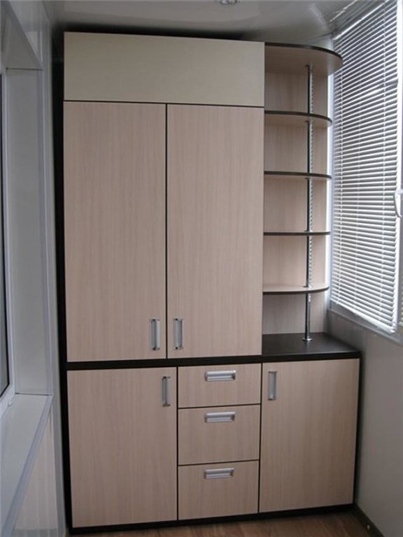 Изготавливается из ЛДСП. Оснащена ящиками, штангами и полками.