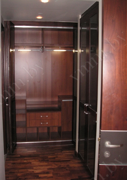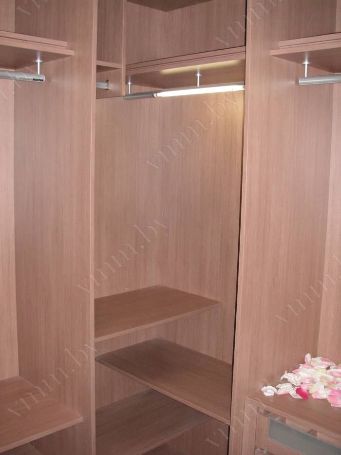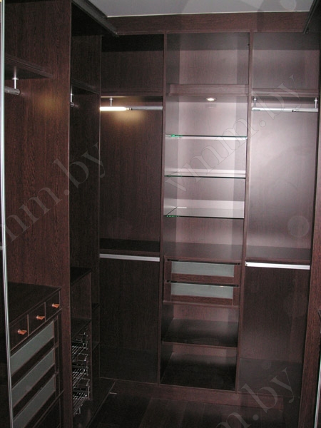 Штанги для одежды, выдвижные ящики, открытые ниши.