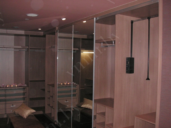 код 19262Большая гардеробная с зеркальными дверями и подсветкой.