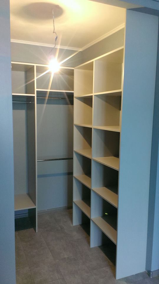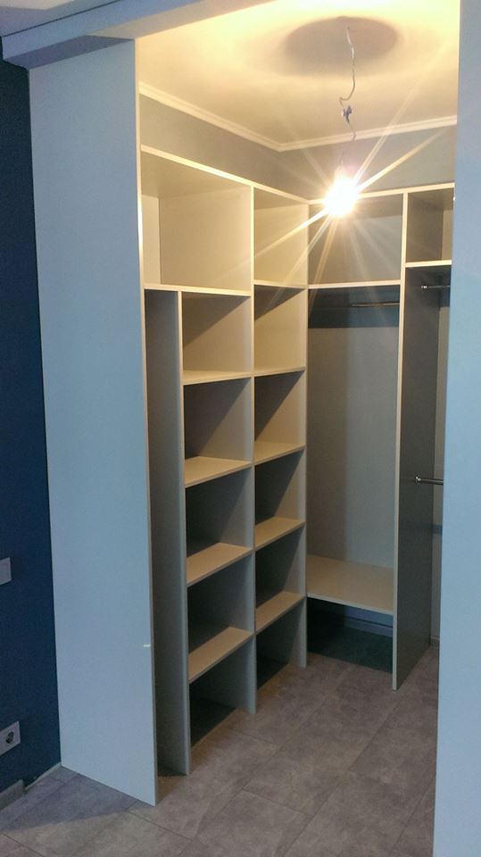 Изготавливается из ЛДСП. Штанги для одежды, выдвижные ящики, открытые ниши.