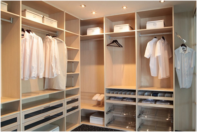 Гардеробная комната в светлых оттенках изготовлена из высококачественной ДСП Egger австрийского производства. Данный образец оборудован ящиками полного выдвижения с доводчиками. Модель комплектуется большим количеством вместительных ниш и шуфлядок, удобными штангами для одежды и полочками различных размеров.