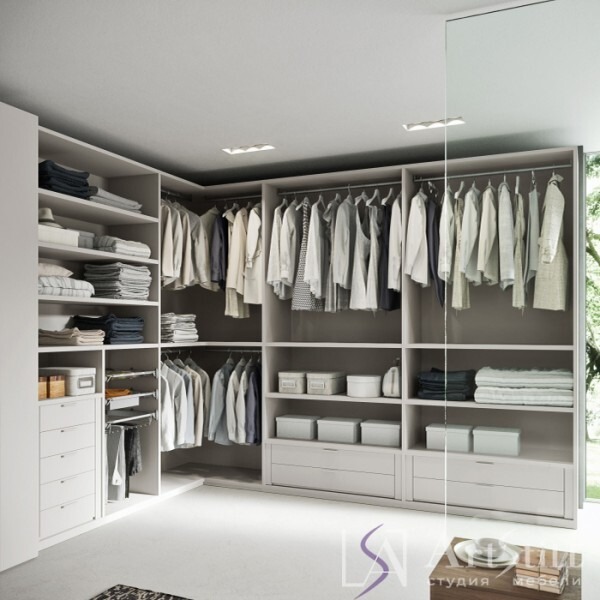 Гардеробная с большим количеством отделений