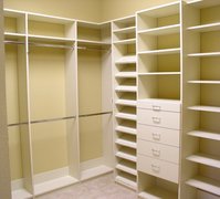 Штанги для одежды, выдвижные ящики, открытые ниши.