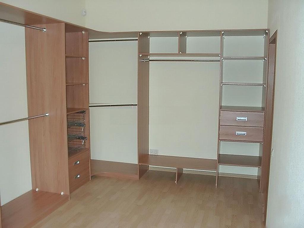 Штанги для одежды, выдвижные ящики, открытые ниши.