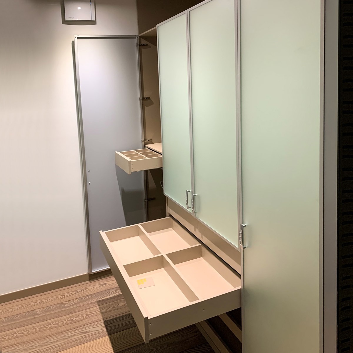 Изготавливается из ЛДСП. Штанги для одежды, выдвижные ящики, открытые ниши.