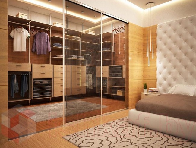Оснащена большим количеством полок, ящиков и штанг для хранения верхней одежды.