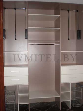 Гардеробная с выдвижными ящиками и хромированной перекладиной