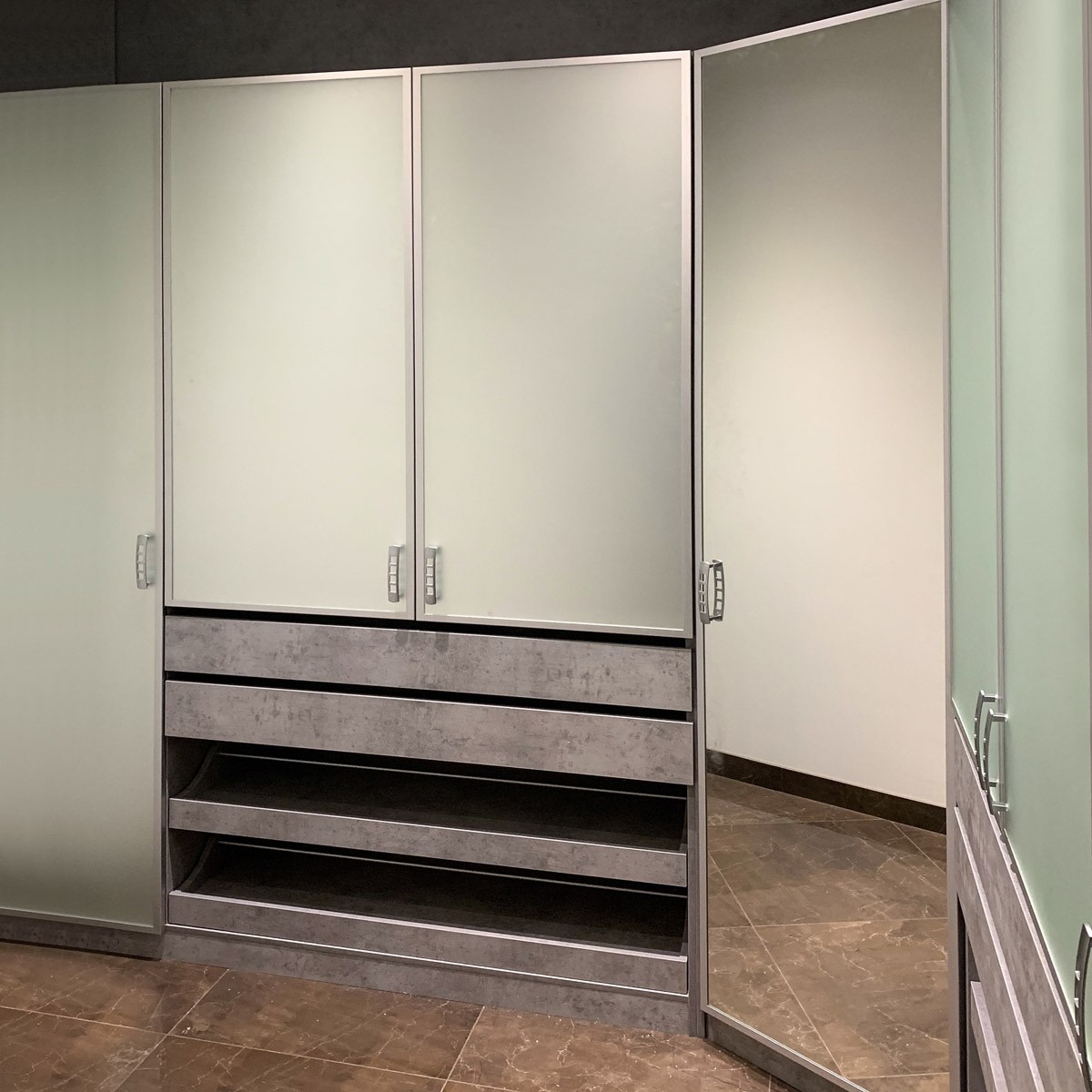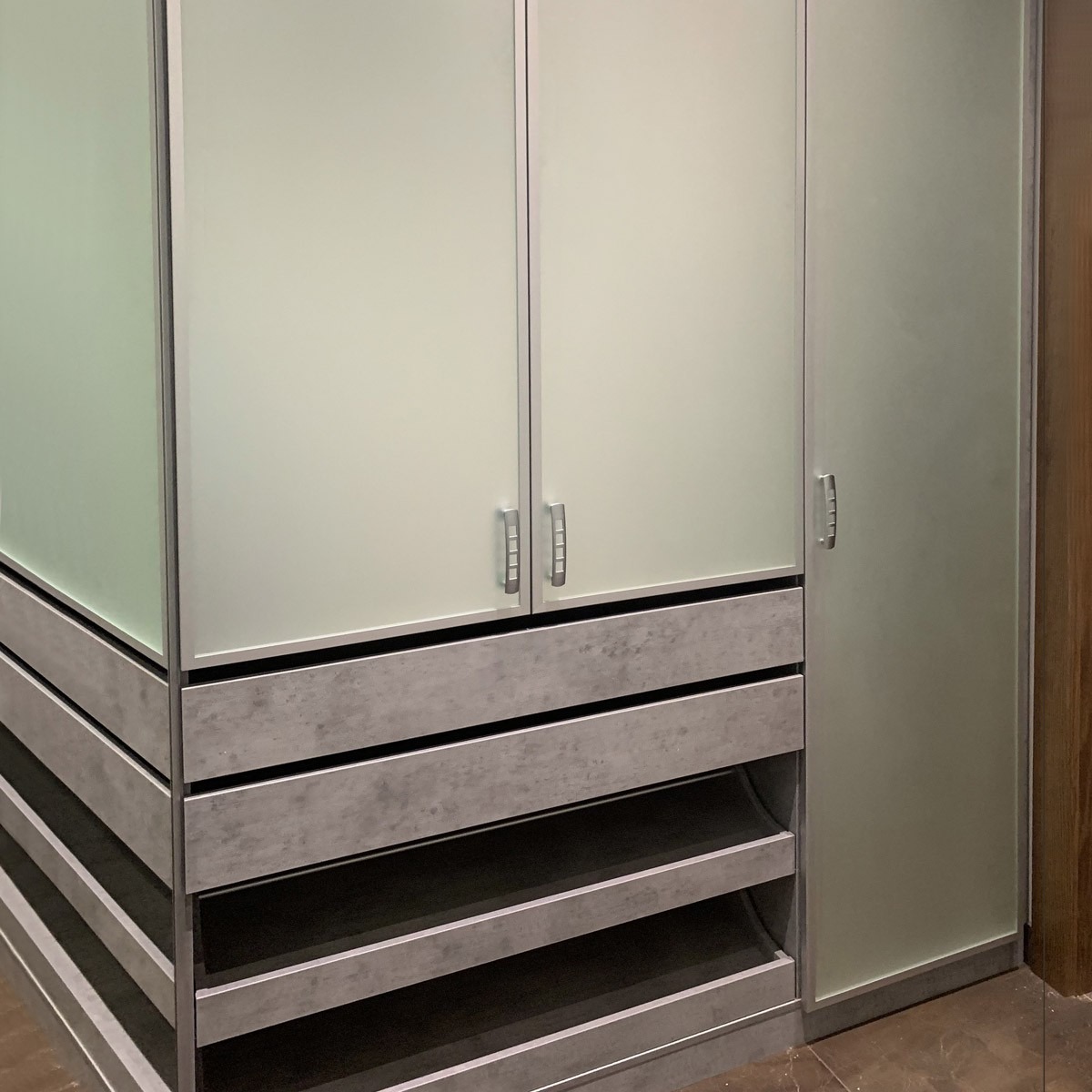 Шкаф с нишей и выдвижными ящиками.
