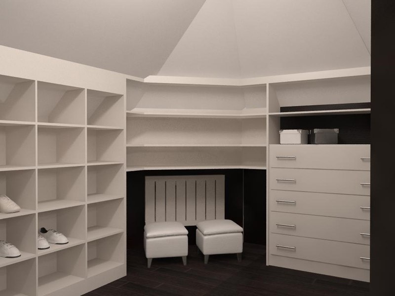 Изготавливается из ЛДСП. Штанги для одежды, выдвижные ящики, открытые ниши. Подсветка.