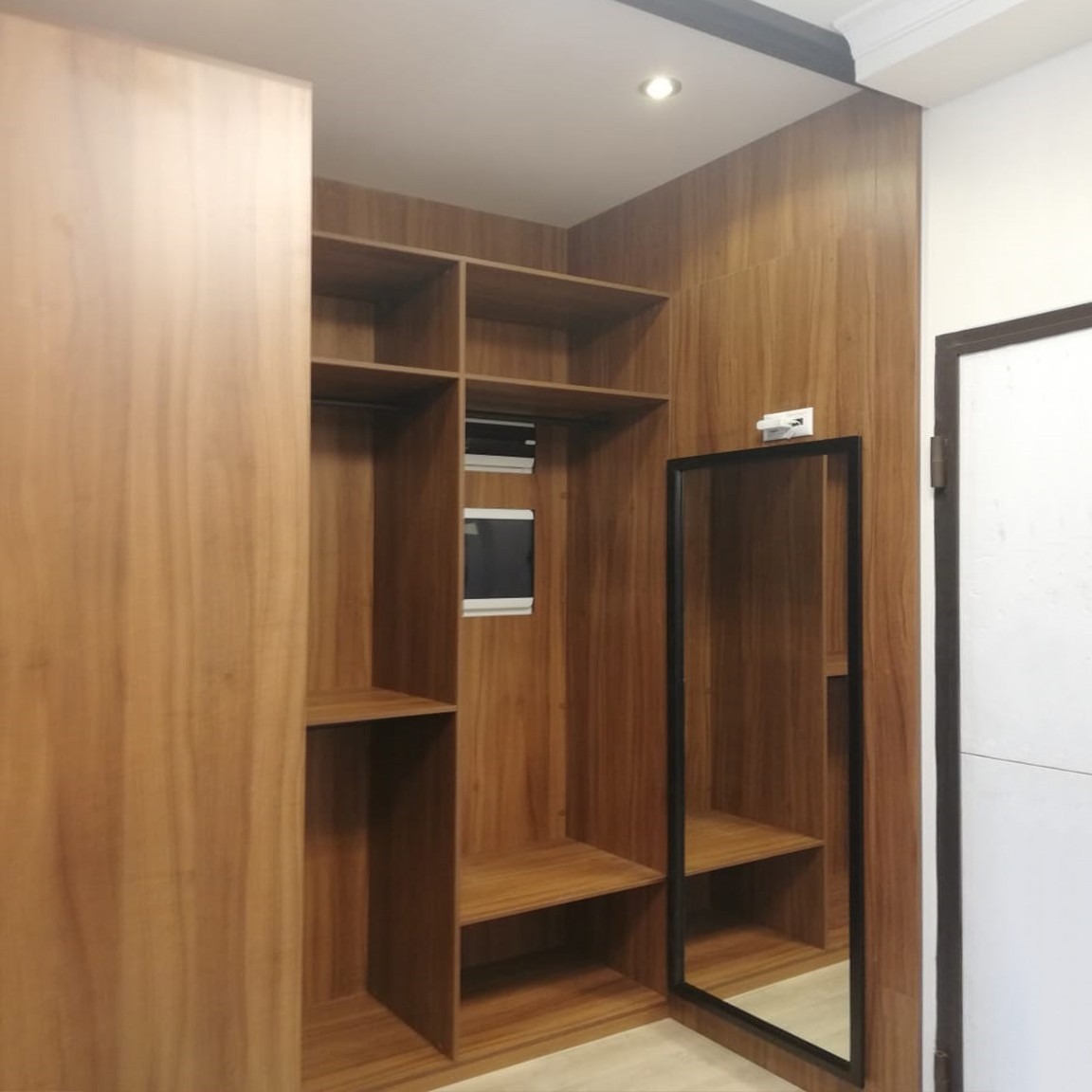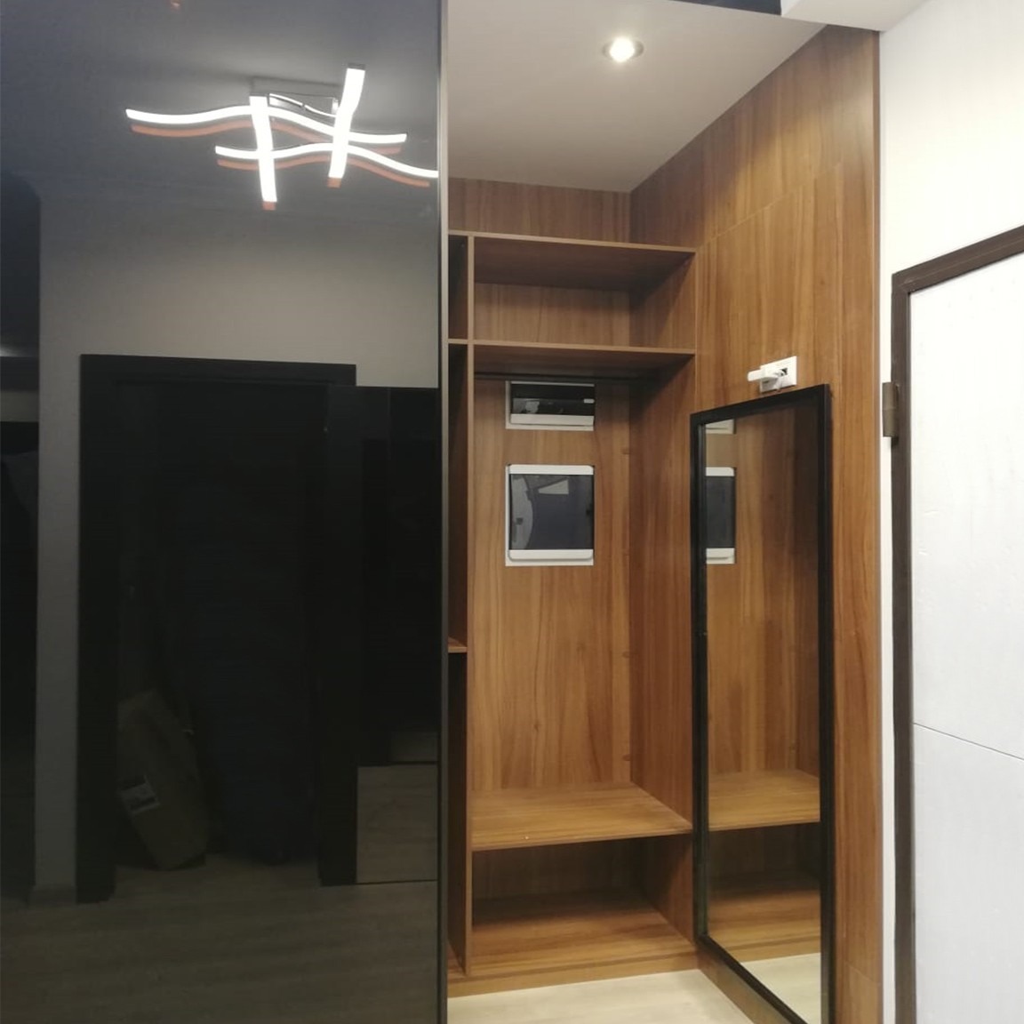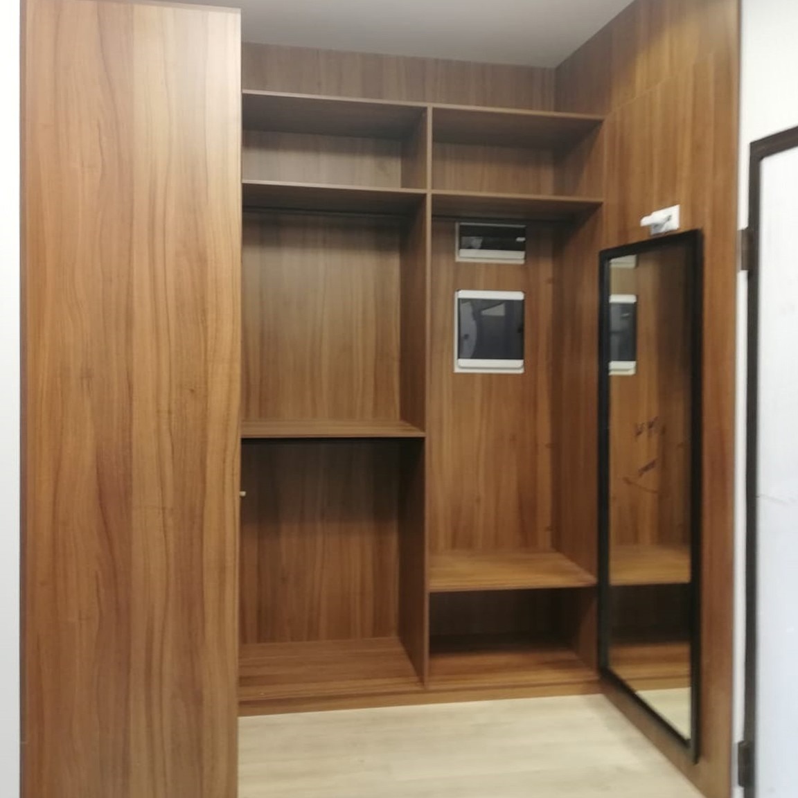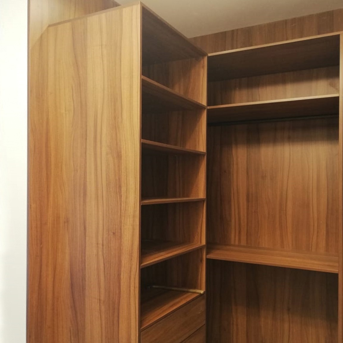 Штанги для одежды, выдвижные ящики, открытые ниши.