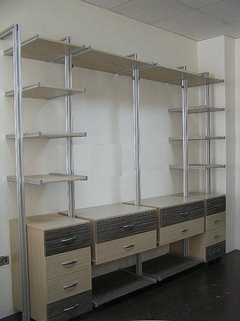 Шкаф с нишей и выдвижными ящиками в светлых тонах.