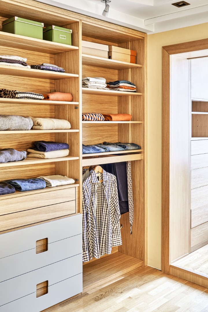 Простая, но вместительная и эргономичная гардеробная в скандинавском стиле.